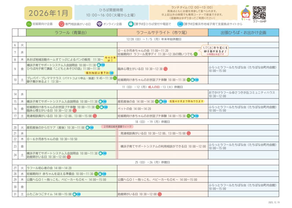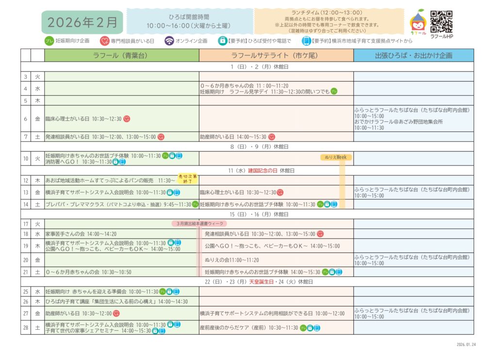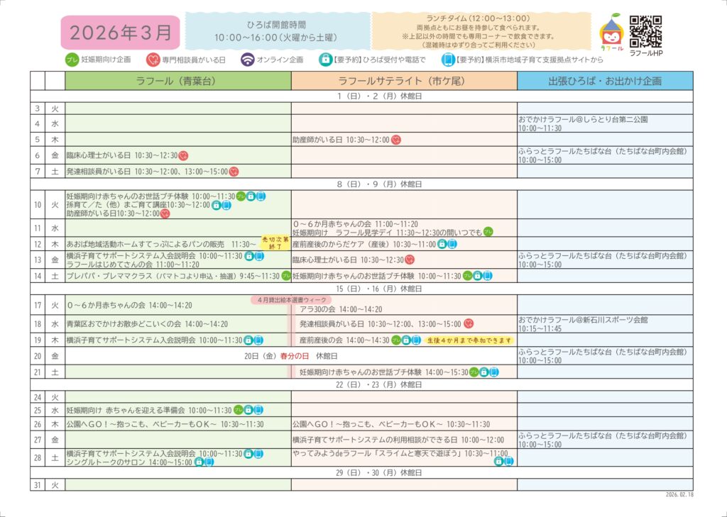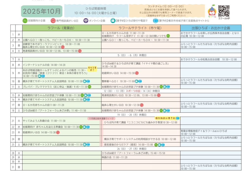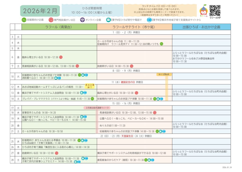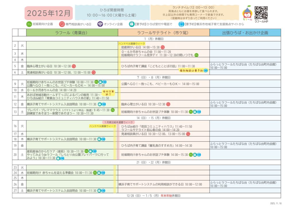 ひろばカレンダー(青葉台・サテライト)
